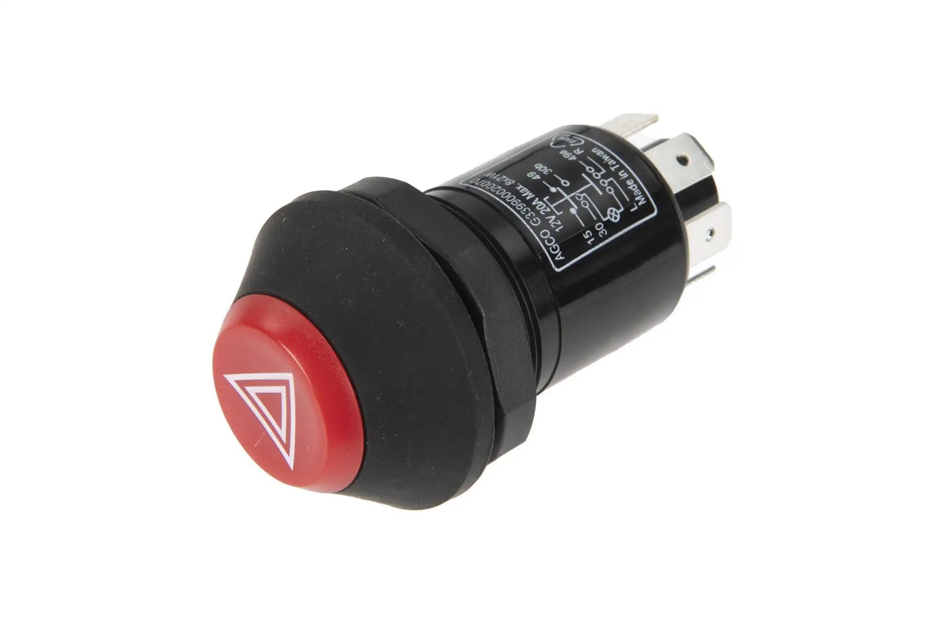 Oryginalny włącznik świateł awaryjnych o numerze katalogowym G339900020070, stosowany w maszynach rolniczych marki Fendt.