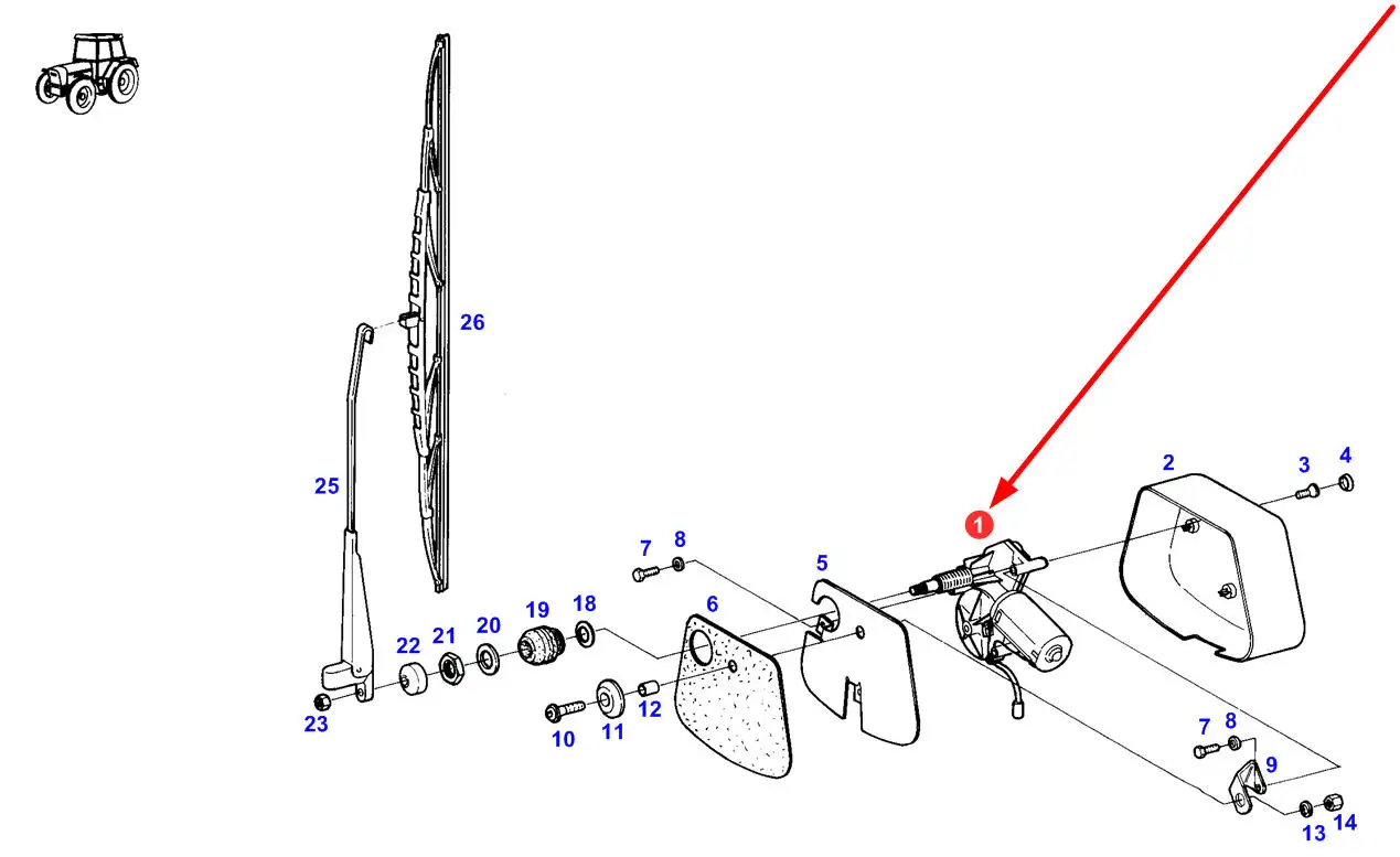 Oryginalny silnik wycieraczki przedniej szyby kabiny o numerze katalogowym G716810170021, stosowany w ciągnikach rolniczych marki Fendt.