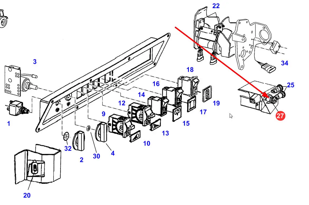 Oryginalny przycisk podnośnika o numerze katalogowym G716861100040, stosowany w ciągnikach rolniczych marek Fendt i Challenger.