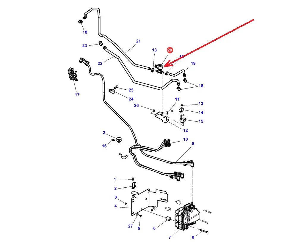 Oryginalny zawór systemu AdBlue o numerze katalogowym G842201720050, stosowany w ciągnikach rolniczych marek Challenger, Fendt, Massey Ferguson i Valtra.