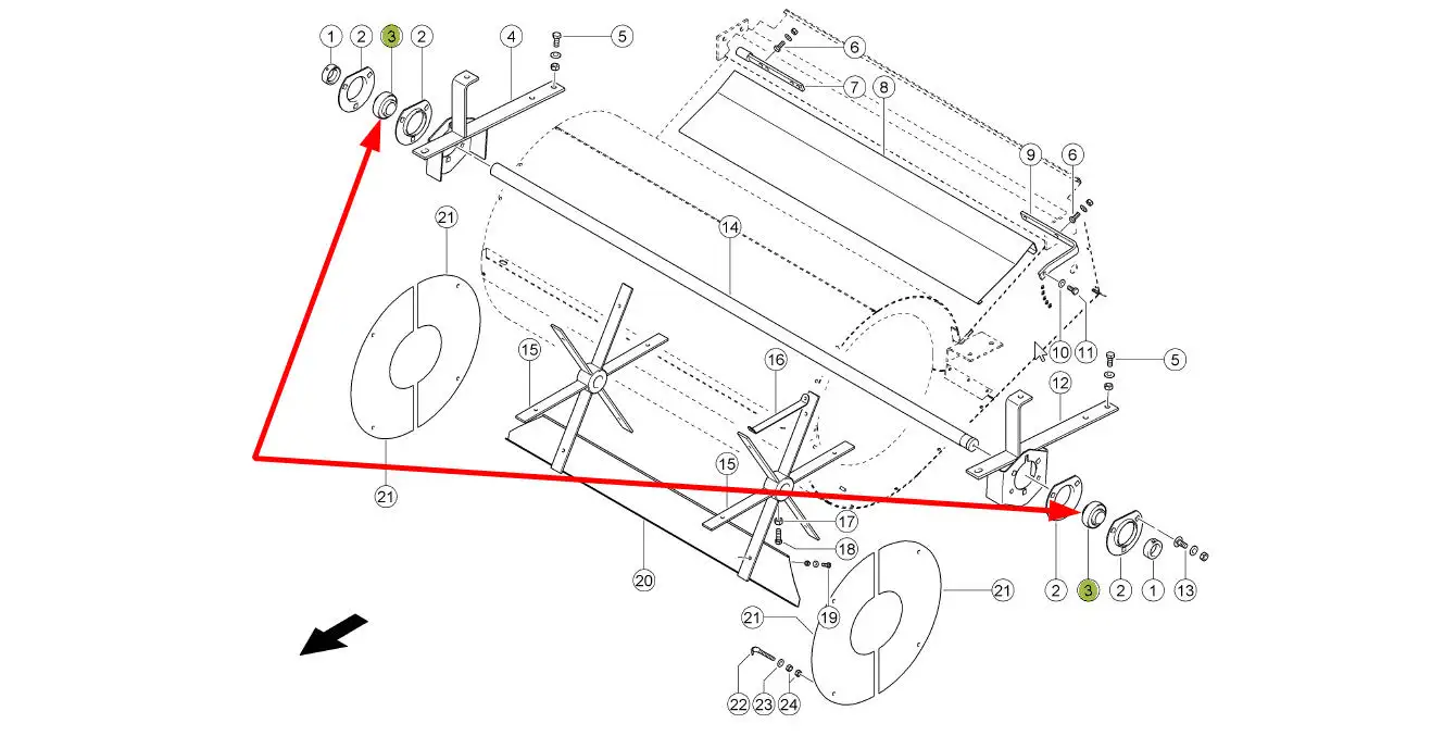 Łożysko samonastawne wentylatora wialni o wymiarach 30 x 62 x 48,4, oznaczeniu Ge-30 kttb, stosowane w kombajnach zbożowych marki Claas.