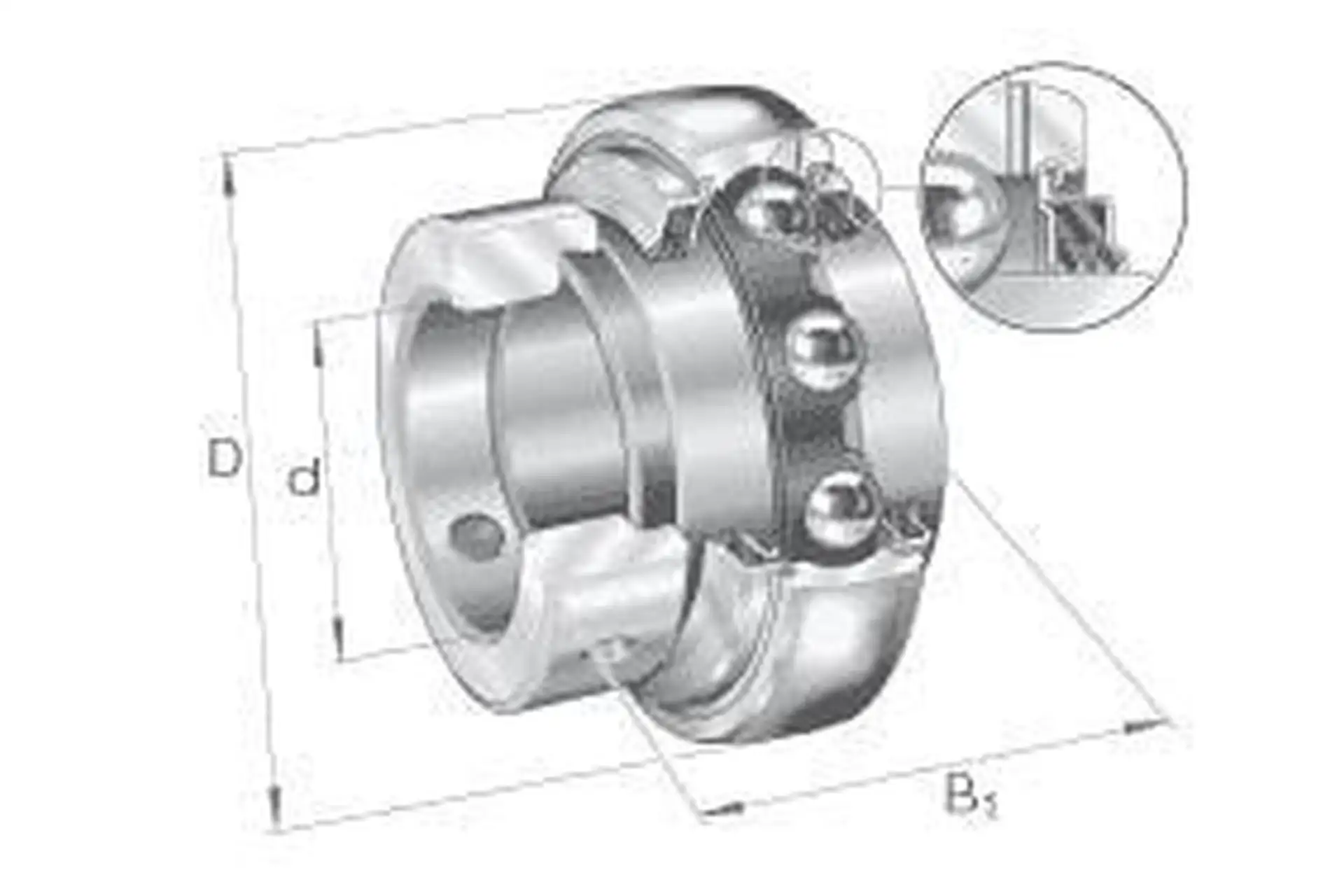 • Właściwości: Dwustronnie wydłużony pierścień zewnętrzny z pierścieniem mocującym Wypukły pierścień zewnętrzny z kanałem smarowym Obudowa poliamidowa
