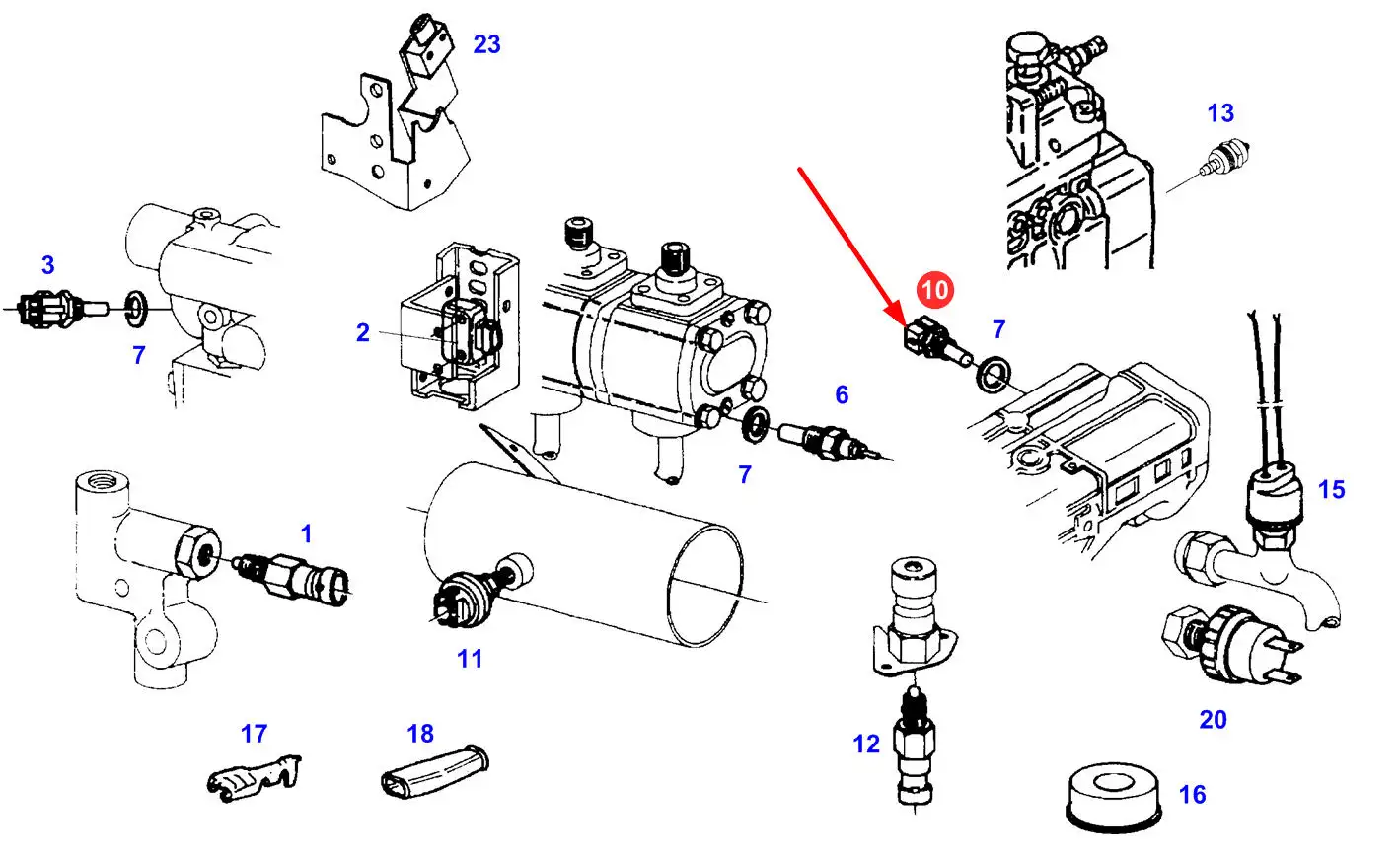 Oryginalny czujnik temperatury wody, stosowany w ciągnikach rolniczych marki Fendt.