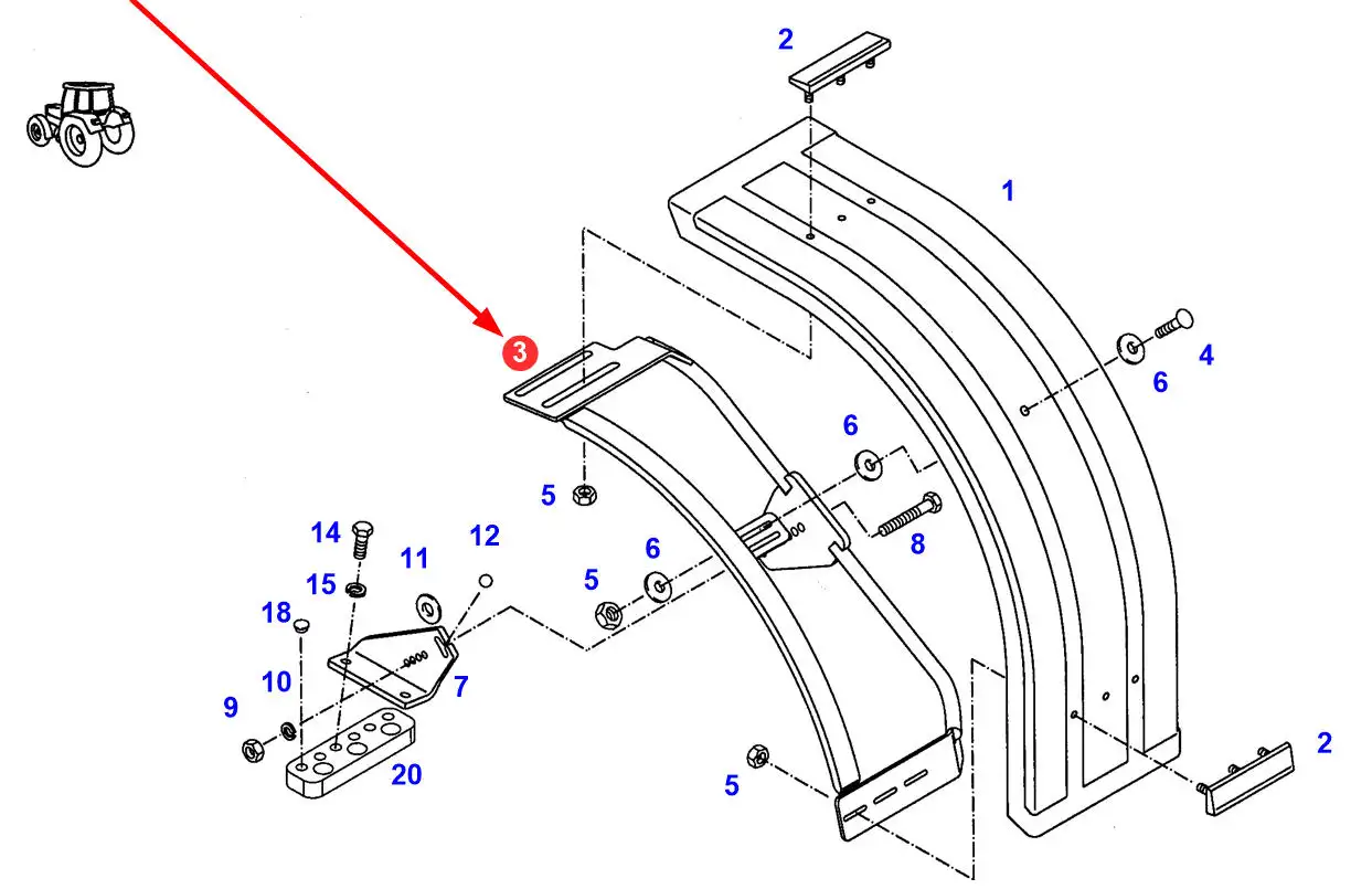 Oryginalna, lewa rama błotnika przedniego o numerze katalogowym H716700031032, stosowana w ciągnikach rolniczych marki Fendt.