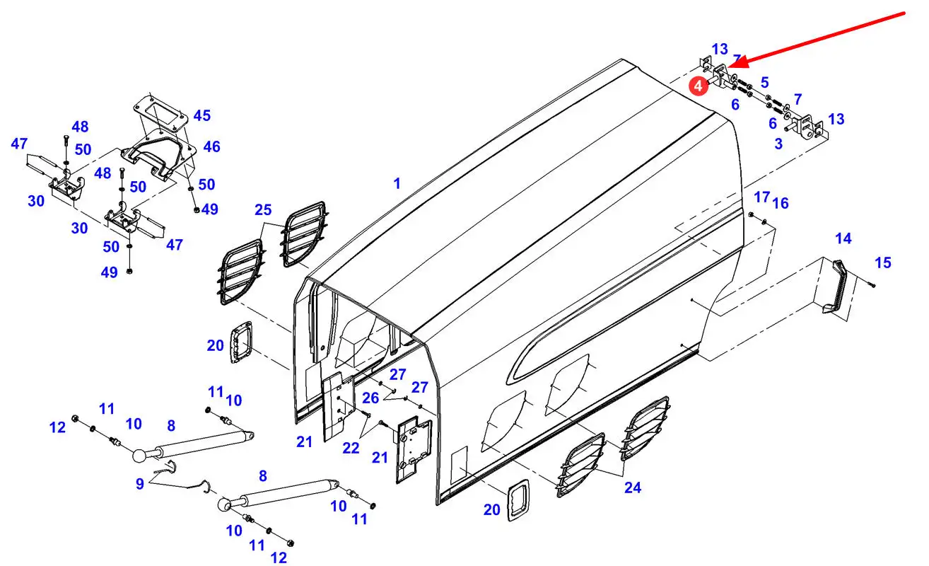 Oryginalne mocowanie maski o numerze katalogowym H725500020730, stosowane w ciągnikach rolniczych marki Fendt.