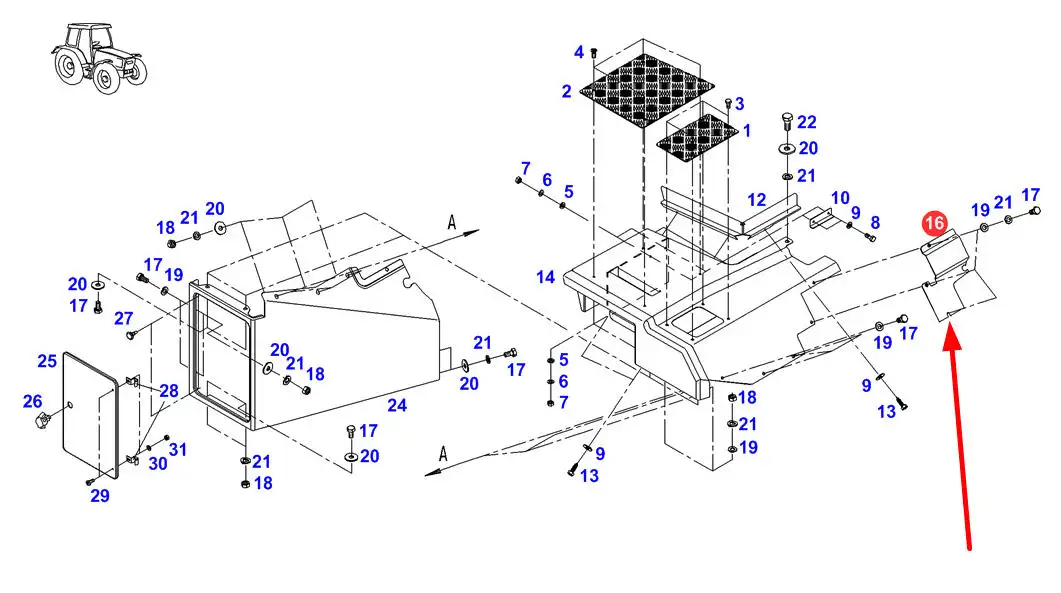 Oryginalna oslona metalowa o numerze katalogowym H725500170020, stosowana w ciągnikach rolniczych marki Fendt.