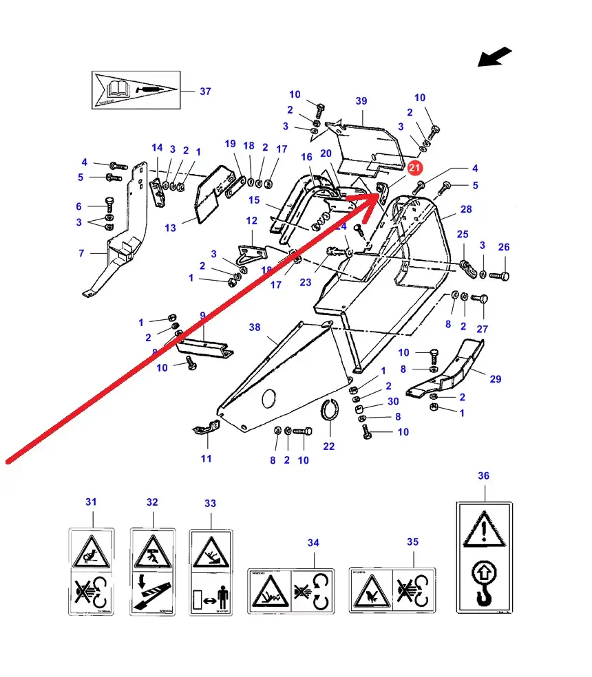 Oryginalny uchwyt osłony o numerze katalogowym LA300115979, stosowany w hederach marek Massey Ferguson, Fendt, Challenger.