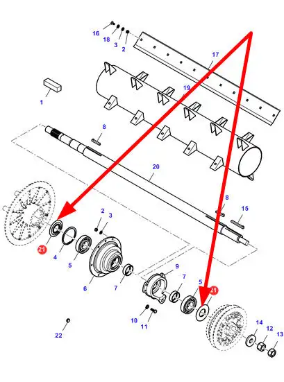 Oryginalna podkładka oporowa łożyska bębna dogniatającego o numerze katalogowym LA320971650, stosowana w kombajnach zbożowych marek Massey Ferguson, Challenger, Laverda oraz Fendt.