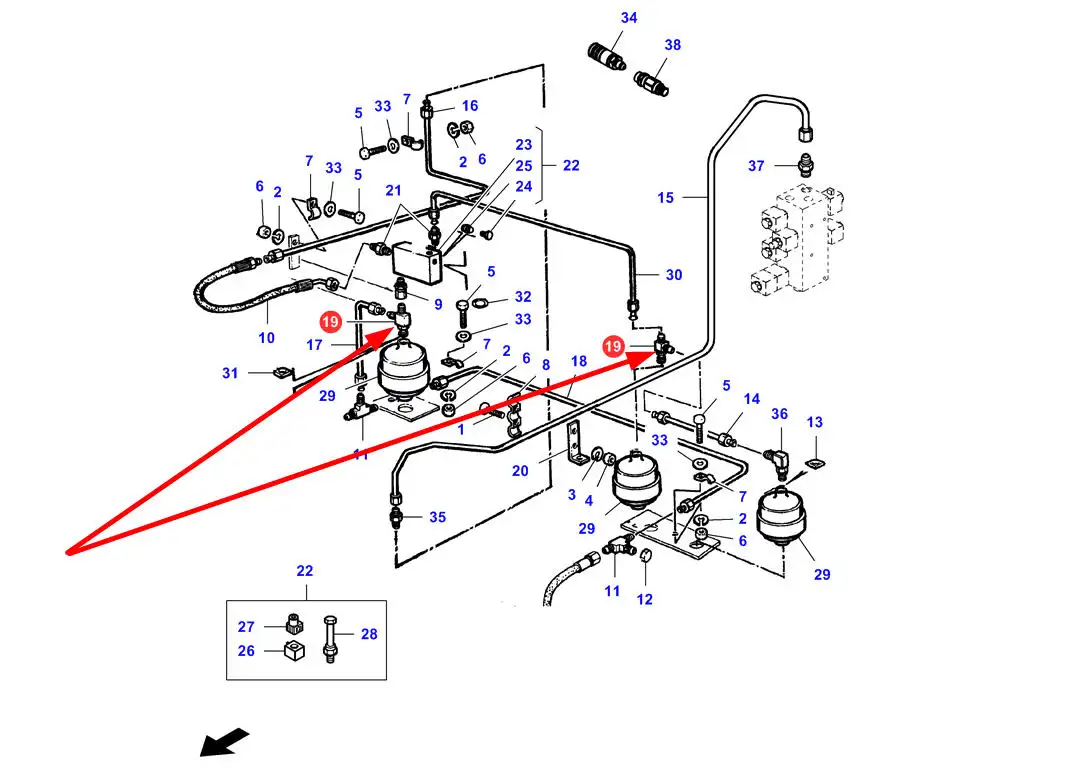 Oryginalny trójnik układu hydraulicznego sieczkarnii, stosowany w kombajnach zbożowych marek Challenger, Fendt, Laverda i Massey Ferguson.