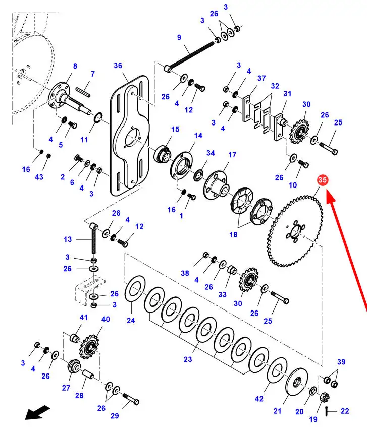 Oryginalne koło zębate 51 zębów o numerze katalogowym LA322779050, stosowane w hederach zbożowych marek Massey Ferguson, Fendt, Challenger i Laverda.
