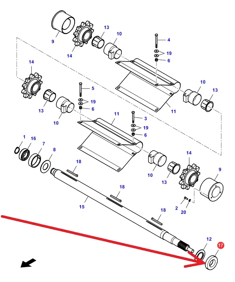 Oryginalne łożysko samonastawne wału przenośnika pochyłego o wymiarach 45 x 85 x 19 i numerze katalogowym LA340411277, stosowane w kombajnach zbożowych marek Massey Ferguson, Fendt, Challenger oraz w maszynach rolniczych marki Claas.