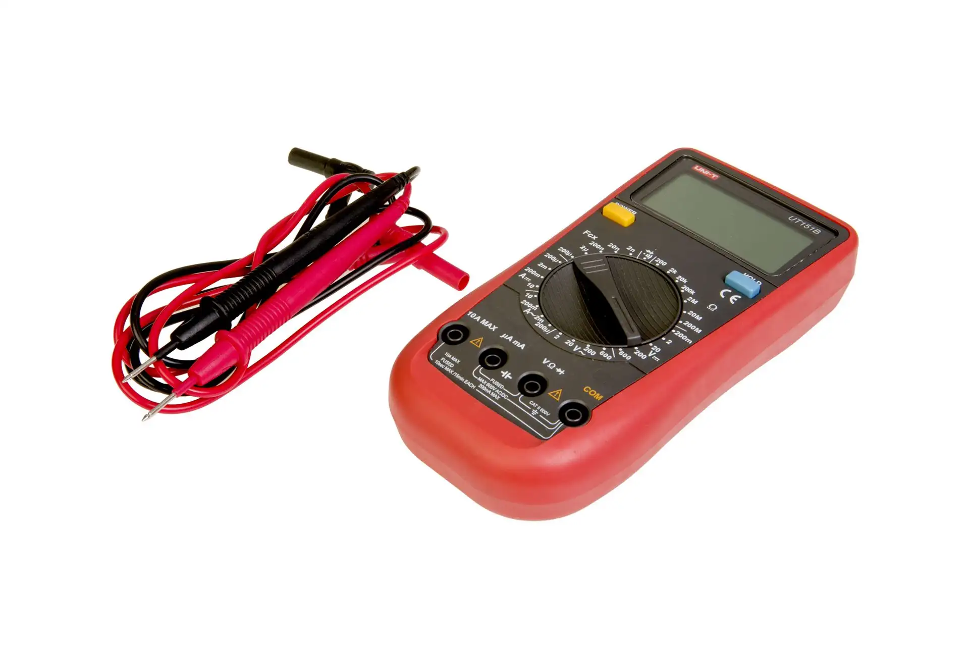 UT151B to cyfrowy multimetr uniwersalny z wyświetlaczem z ręczną zmianą zakresów pomiarowych, akustycznym testerem ciągłości, funkcją Data Hold oraz testem diód. Dodatkowo wykonuje podstawowe pomiary napięcia i prądu AC/DC, częstotliwości, rezystancji oraz pojemności.