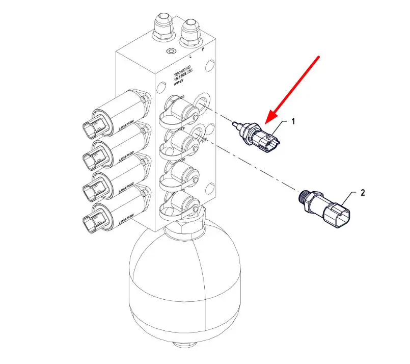 Oryginalny czujnik temperatury układu hydraulicznego o numerze katalogowym P5P48801004, stosowany w ciągnikach rolniczych marki Arbos.