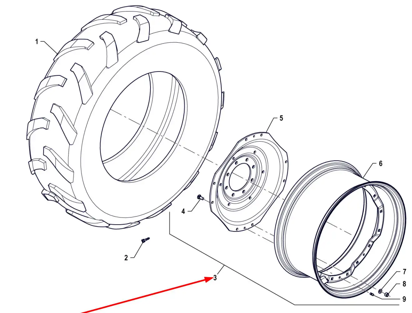 Oryginalna kompletna felga W16L x 34 o numerze katalogowym P5S32001040, stosowana w ciągnikach rolniczych marki Arbos.