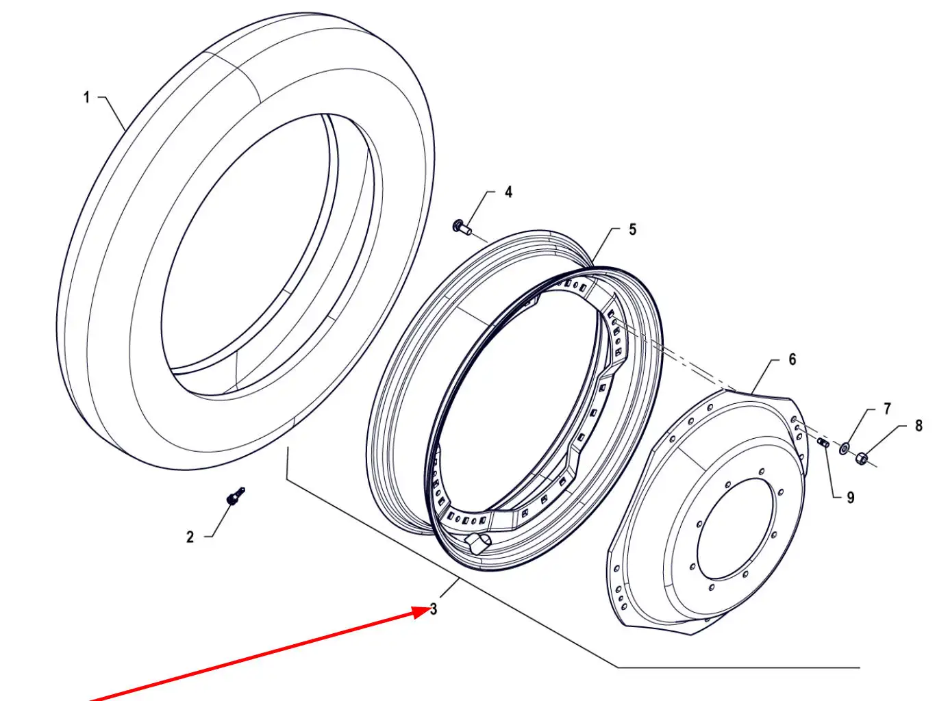 Oryginalna kompletna felga W8 x 32 o numerze katalogowym P5S32001061, stosowana w ciągnikach rolniczych marki Arbos.