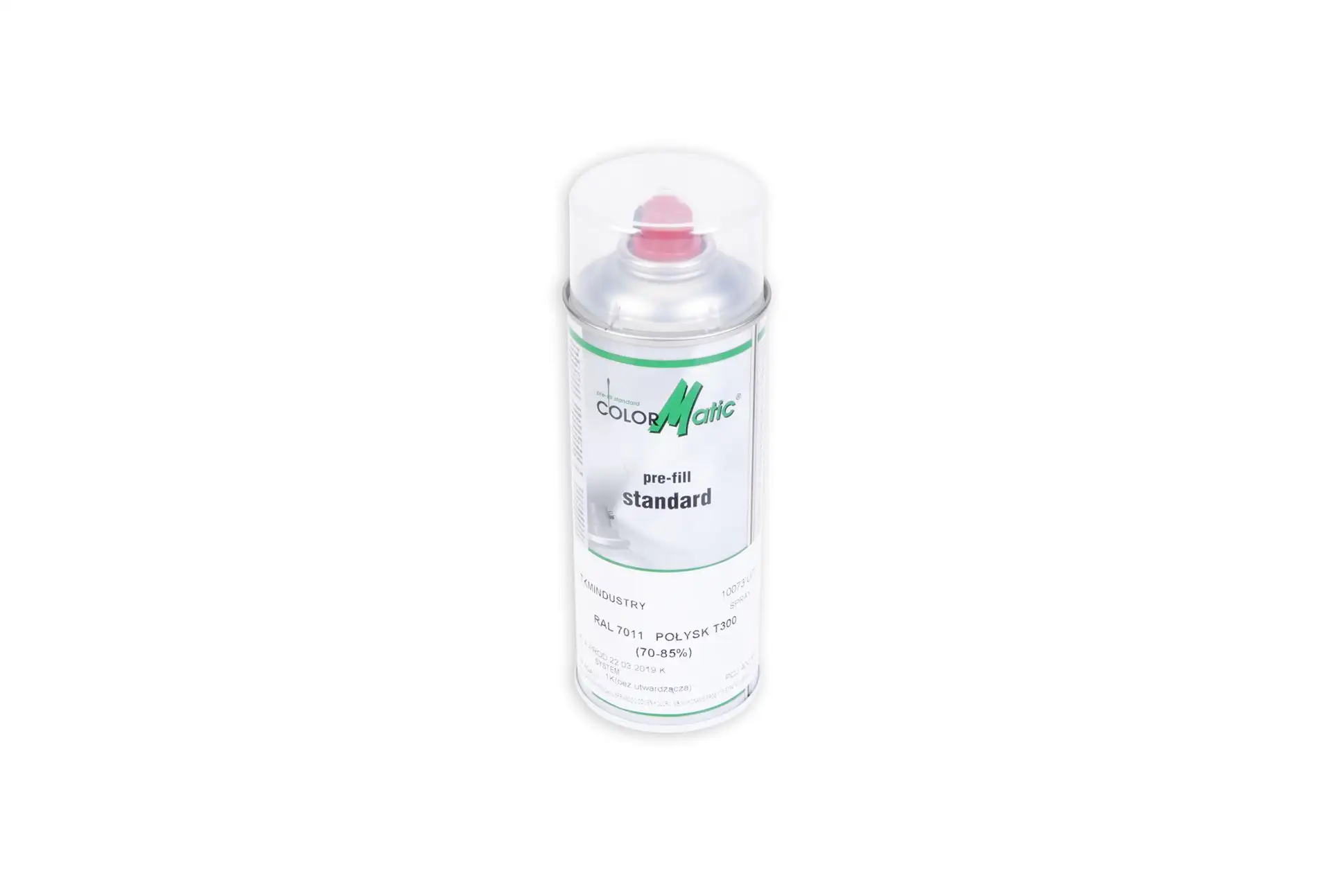 Lakier szary w sprayu, w opakowaniu o pojemności 400 ml i kolorze RAL 7011, stosowany do malowania maszyn rolniczych marki Famarol.