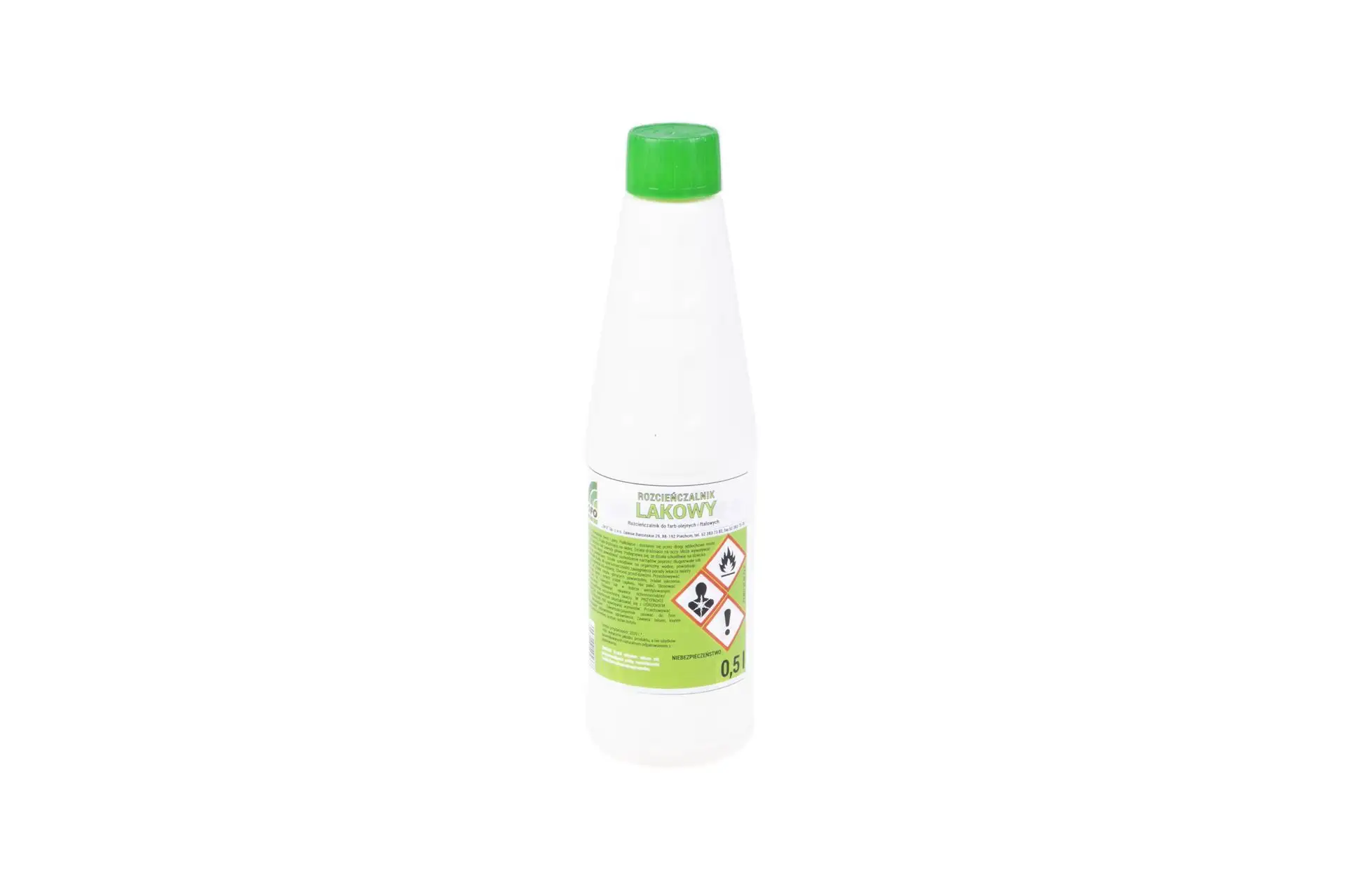 Rozcieńczalnik lakowy w opakowaniu o pojemności 0,5 litra, stosowany m. in. w pracach lakierniczych.