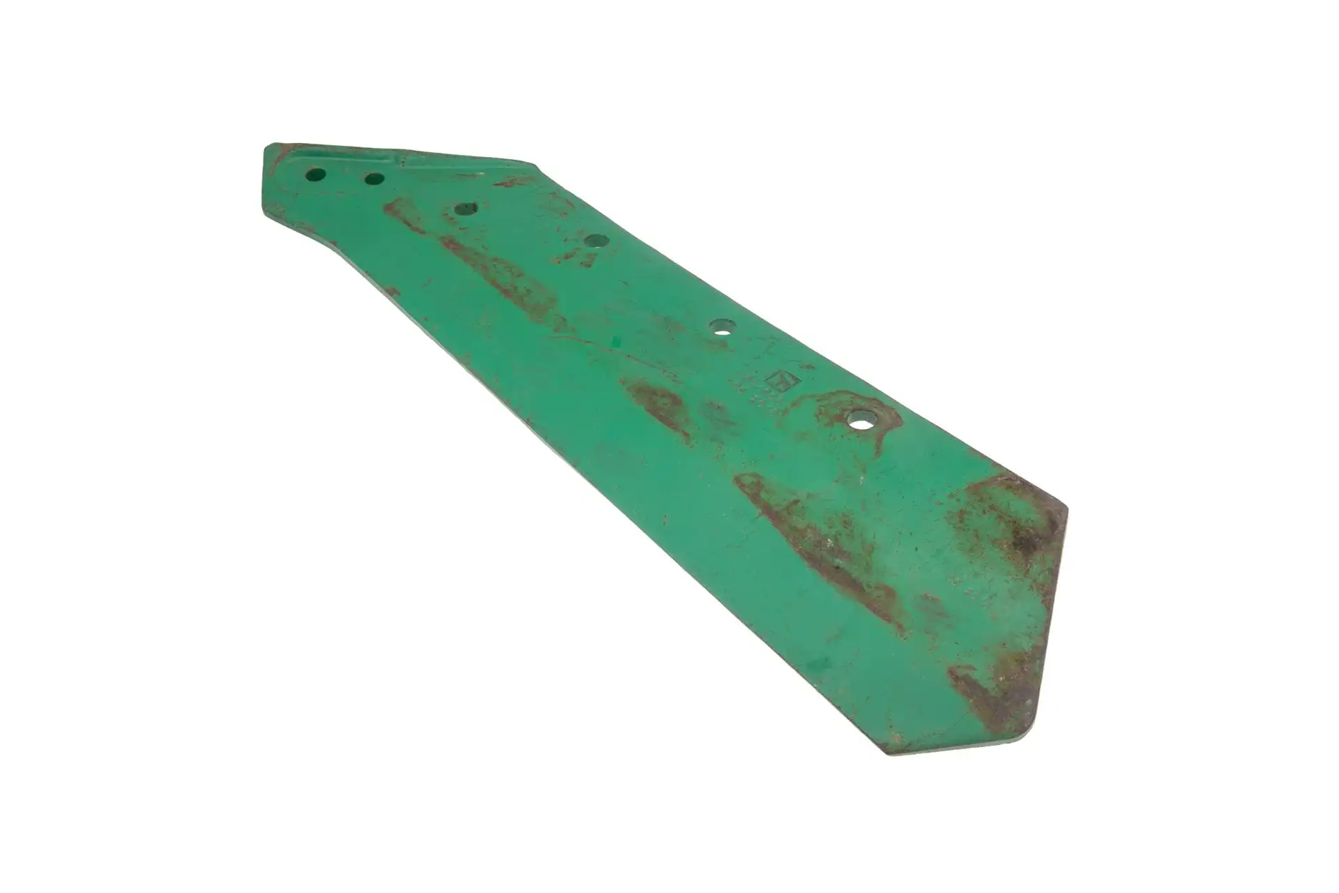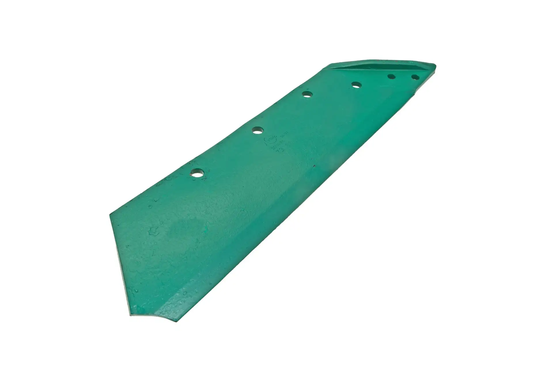 Wykonany w technologii napawania węglikiem wolframu prawy lemiesz francuskiej marki Agricarb, stosowany jako zamiennik oryginalnego lemiesza montowanego w maszynach uprawowych marki Kverneland.