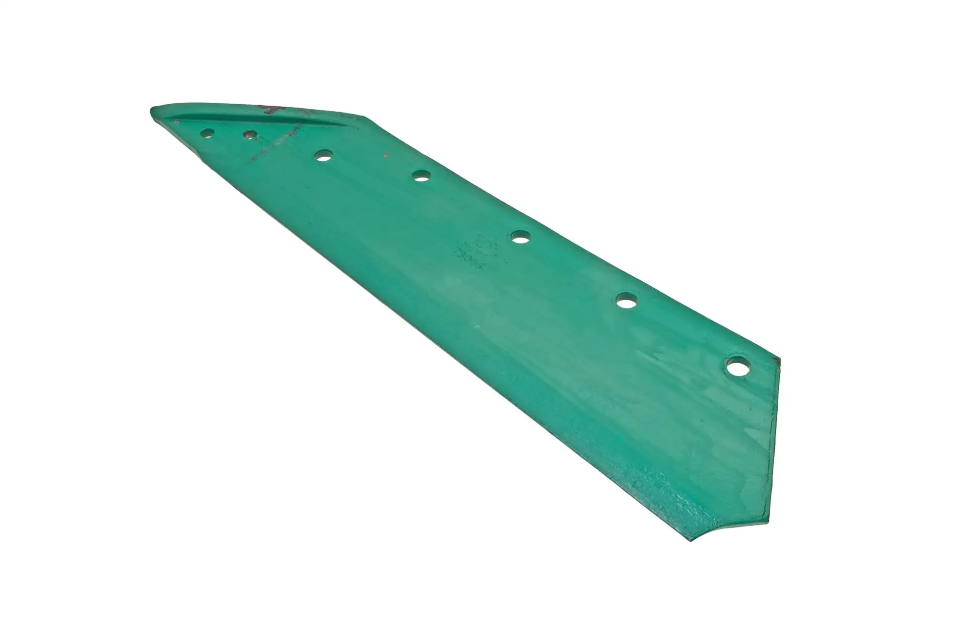 Wykonany w technologii napawania węglikiem wolframu prawy lemiesz francuskiej marki Agricarb, stosowany jako zamiennik oryginalnego lemiesza montowanego w maszynach uprawowych marki Kverneland.
