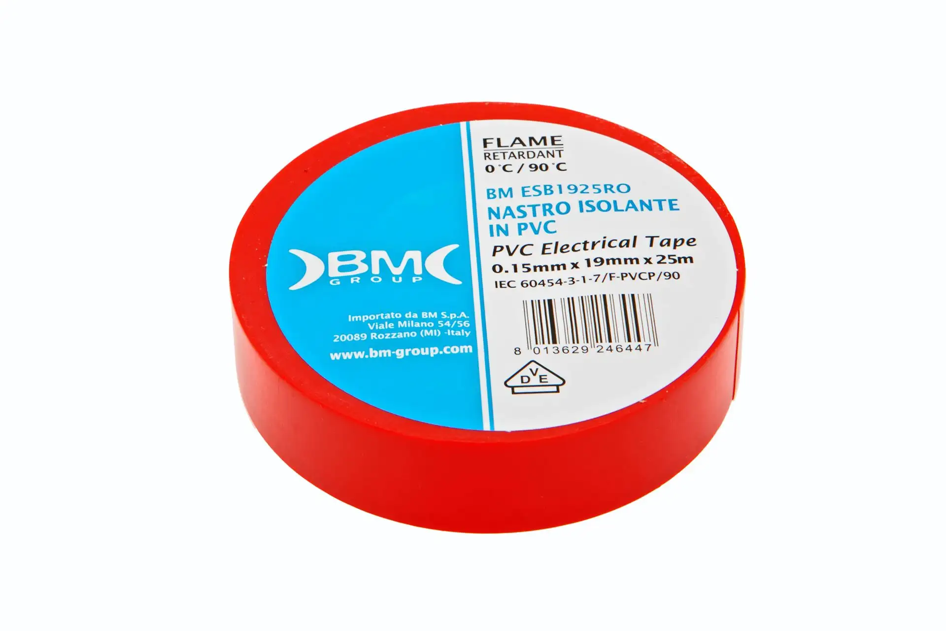 Taśma izolacyjna w kolorze czerwonym, marki BETA o długości 25 m, szerokości 19 mm i grubości 0,15 mm, stosowana do izolacji układów elektrycznych oraz wielu innych.