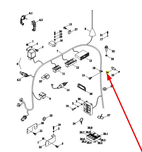 Oryginalny przełącznik alarmu niskiego ciśnienia układu kierowniczego o numerze katalogowym TB1S482020003K, stosowany w ciągnikach rolniczych marek Arbos oraz Lovol.