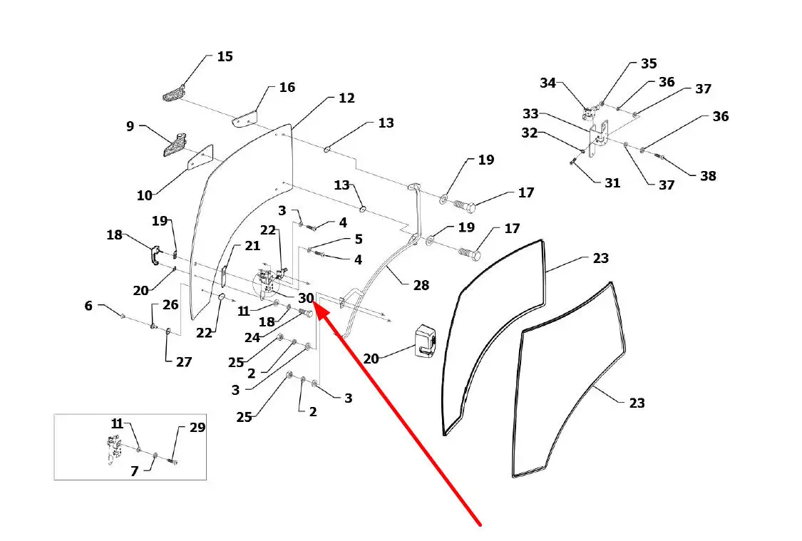 Oryginalny kompletny zamek drzwi kabiny prawy o numerze katalogowym TS06451014017, stosowany w ciągnikach rolniczych marek Arbos oraz Lovol.
