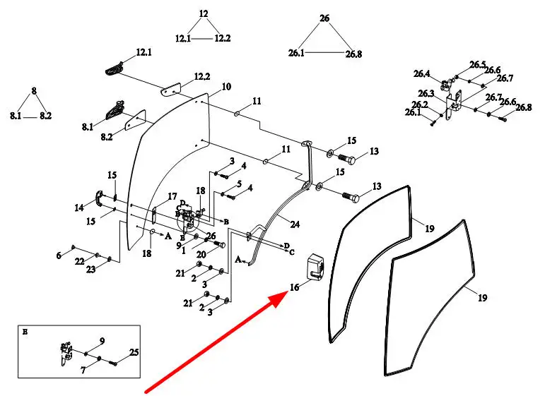 Oryginalna osłona zamka prawych drzwi o numerze katalogowym TS06451014230, stosowana w ciągnikach rolniczych marek Arbos oraz Lovol.