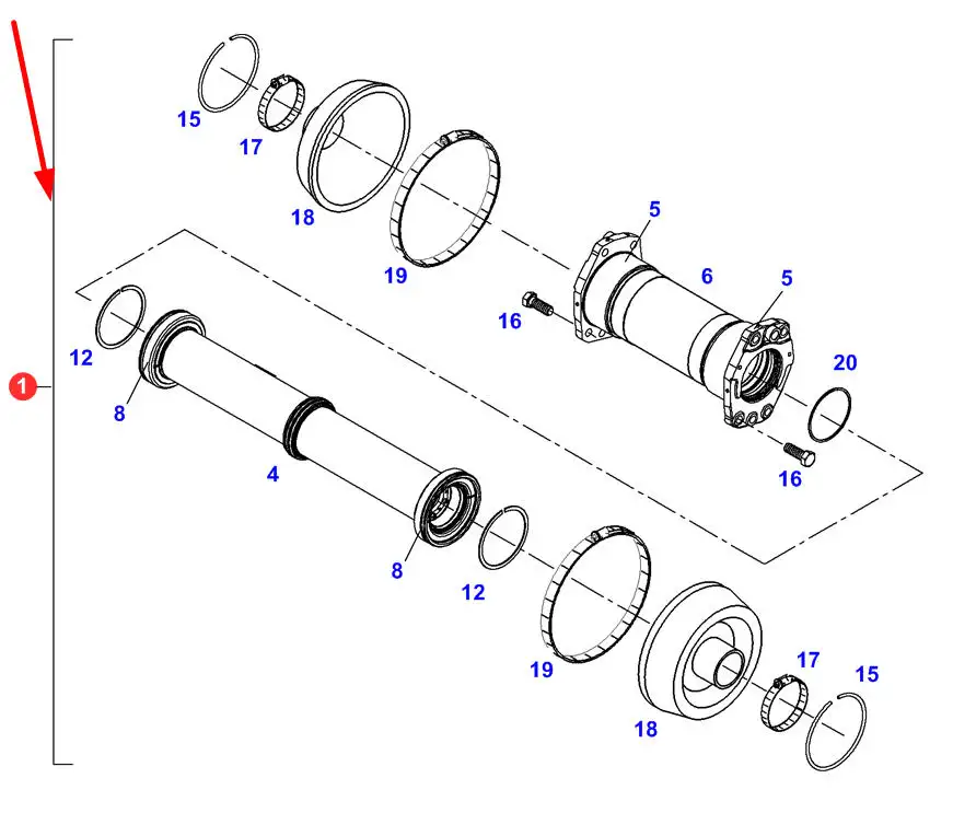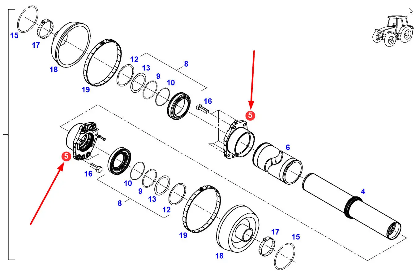 Oryginalny zestaw naprawczy siłownika kierowniczego o numerze katalogowym U954300510000, stosowany w ciągnikach rolniczych marki Fendt.