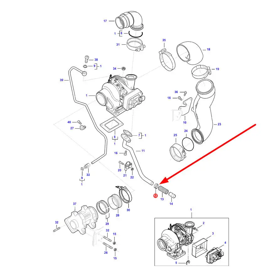 Oryginalna opaska zaciskowa przewodu smarującego turbiny o numerze katalogowym V602084722, stosowana w ciągnikach rolniczych oraz kombajnach zbożowych marki Massey Ferguson, Valtra, Fendt, Laverda, Challenger.