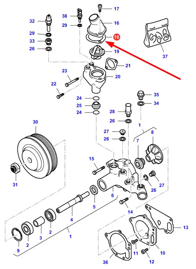 Oryginalna uszczelka termostatu, stosowana w maszynach rolniczych marki Massey Ferguson, Challenger, Fendt, Laverda, Valtra.