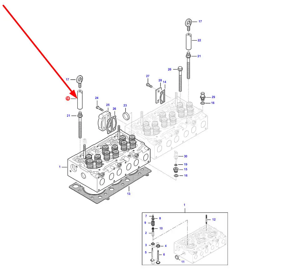 Oryginalny łącznik gwintowany ucha do podnoszenia głowicy o numerze katalogowym V837067791, stosowany w ciągnikach rolniczych marki Massey Ferguson, Fendt, Challenger, Valtra.