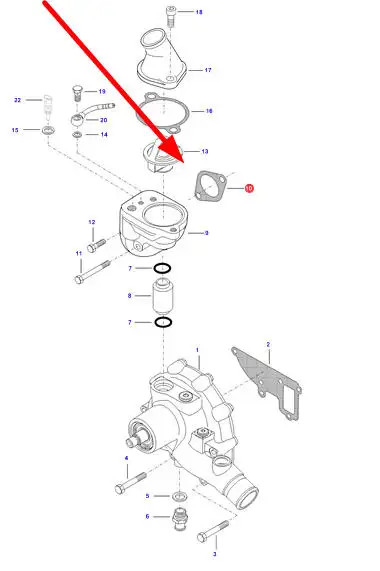 Oryginalna uszczelka obudowy termostatu o numerze katalogowym V837081126, stosowana w ciągnikach rolniczych marki Massey Ferguson.