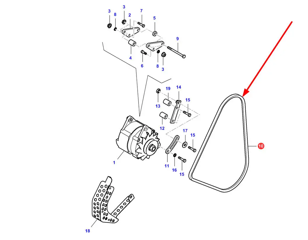 Oryginalny pasek klinowy napędu alternatora o wymiarach AVX13 x 1325 la, stosowany w ciągnikach rolniczych marek Challenger i Massey Ferguson.