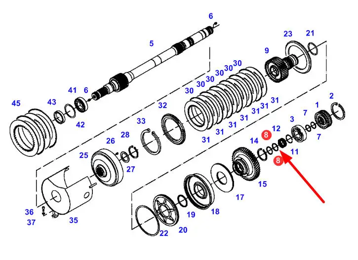 Oryginalny pierścień zamykający o numerze X560703700000, stosowany w ciągnikach rolniczych marek Massey Ferguson, Fendt, Challenger.